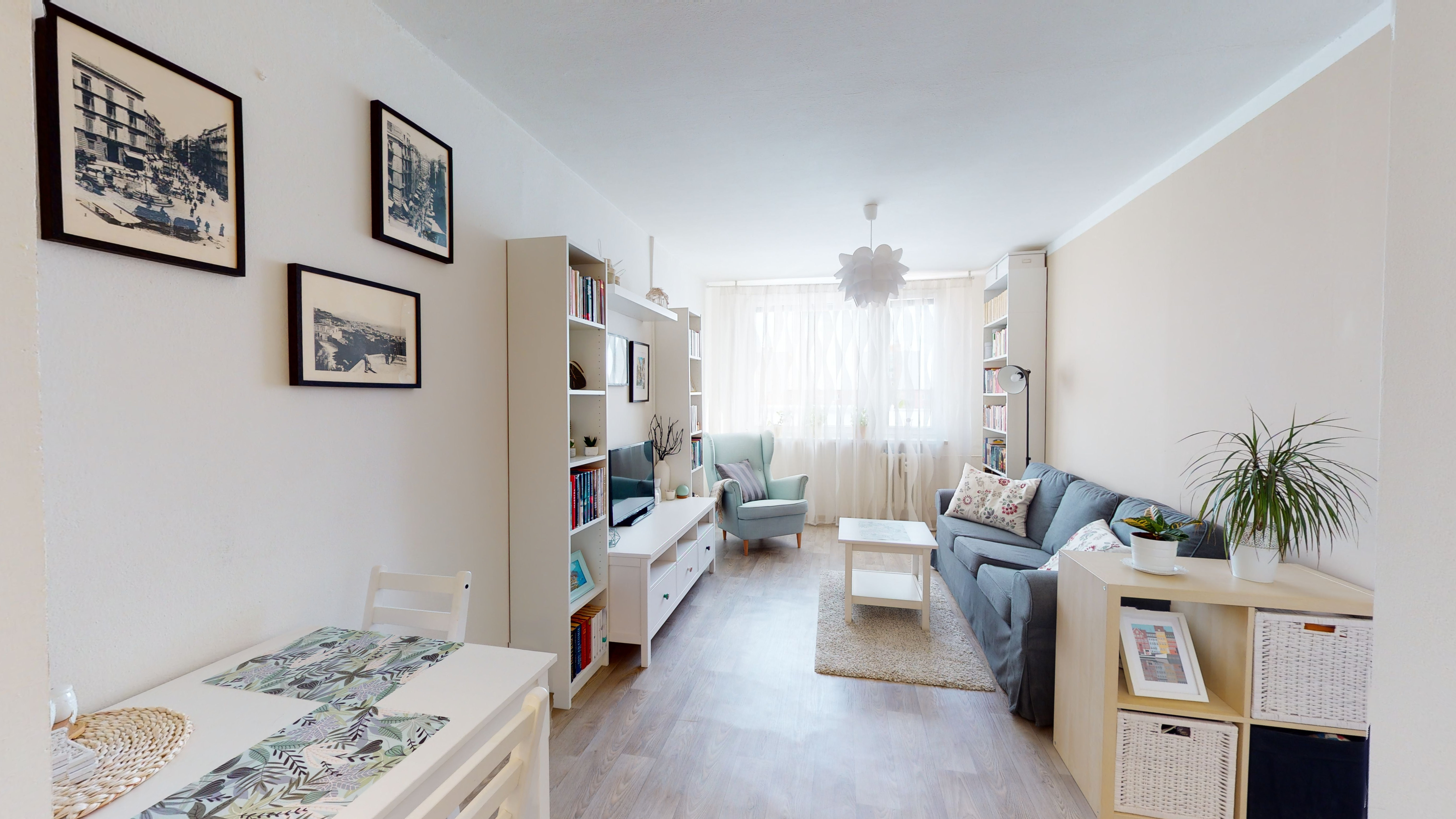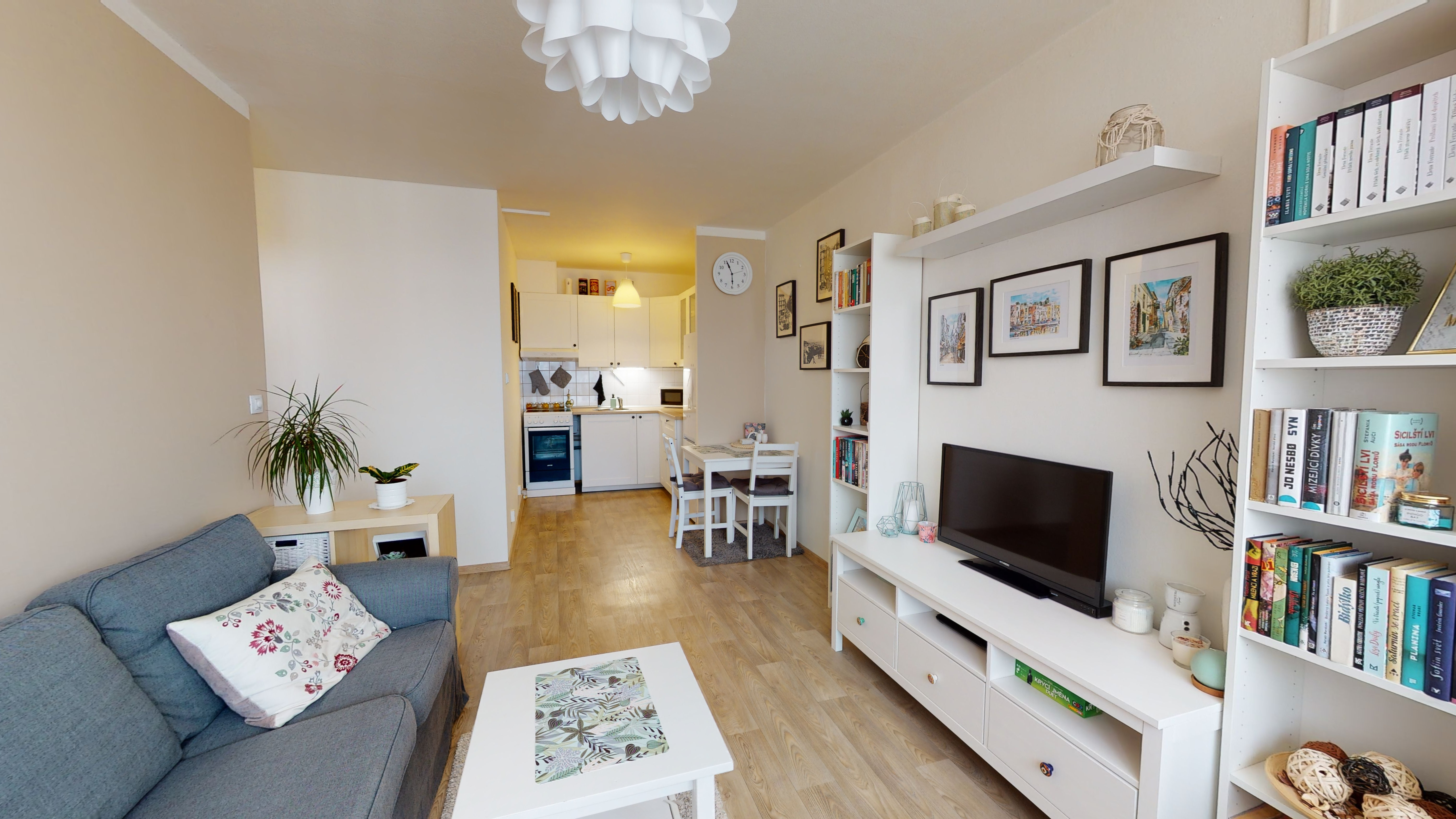 Byt je situován v klidné lokalitě poblíž lesoparku Velký háj, avšak velkou výhodou je výborná dostupnost do Prahy – centrum se nachází přibližně 25 minut cesty autem. Město Odolena Voda nabízí veškerou občanskou vybavenost. V blízkosti se nachází mateřská i základní škola, zdravotní středisko, lékárna i obchody. Autobusová zastávka je vzdálena pouhých 235 m, přímý spoj na stanici metra Kobylisy trvá přibližně 20 minut.