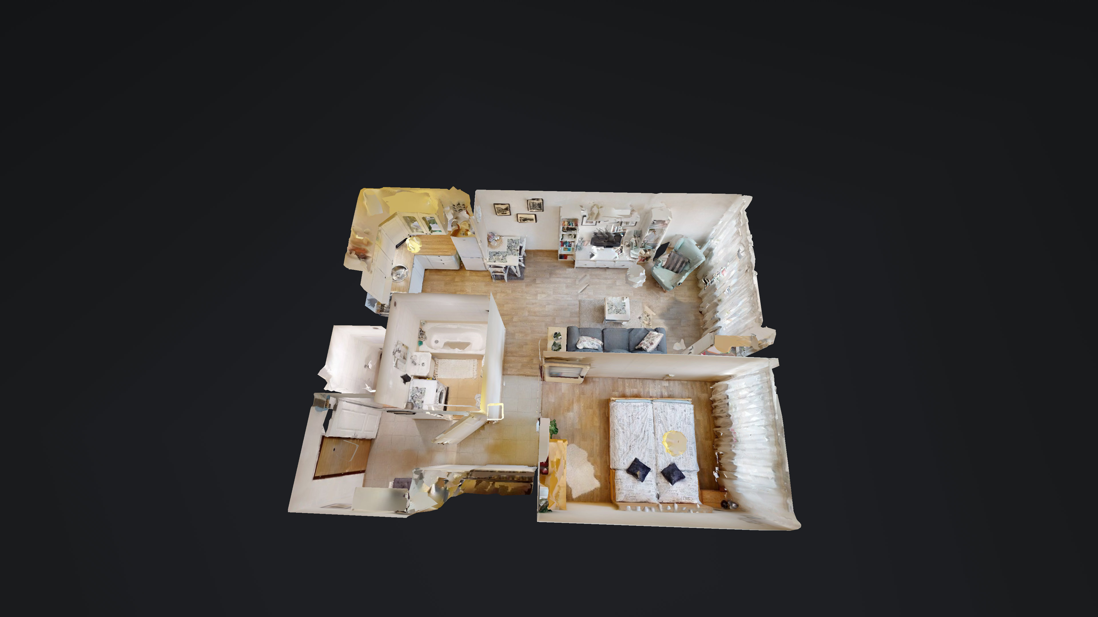 Bytová jednotka má toto dispoziční členění: vstupní chodba, samostatné WC, koupelna (umyvadlo, vana), ložnice a obývací pokoj s kuchyňským koutem (kuchyňská linka, elektrický sporák se sklokeramickou varnou deskou a troubou, digestoř). K bytu náleží sklepní kóje o výměře 2,9 m² a možnost využívání společné kolárny a kočárkárny. V roce 2018 proběhla rekonstrukce, díky které má byt zděné jádro, modernizovanou koupelnu a nové samostatné WC. Vyměněna byla i podlahová krytina a proběhla instalace nových plastových oken. Vše je tedy připraveno k okamžitému užívání.