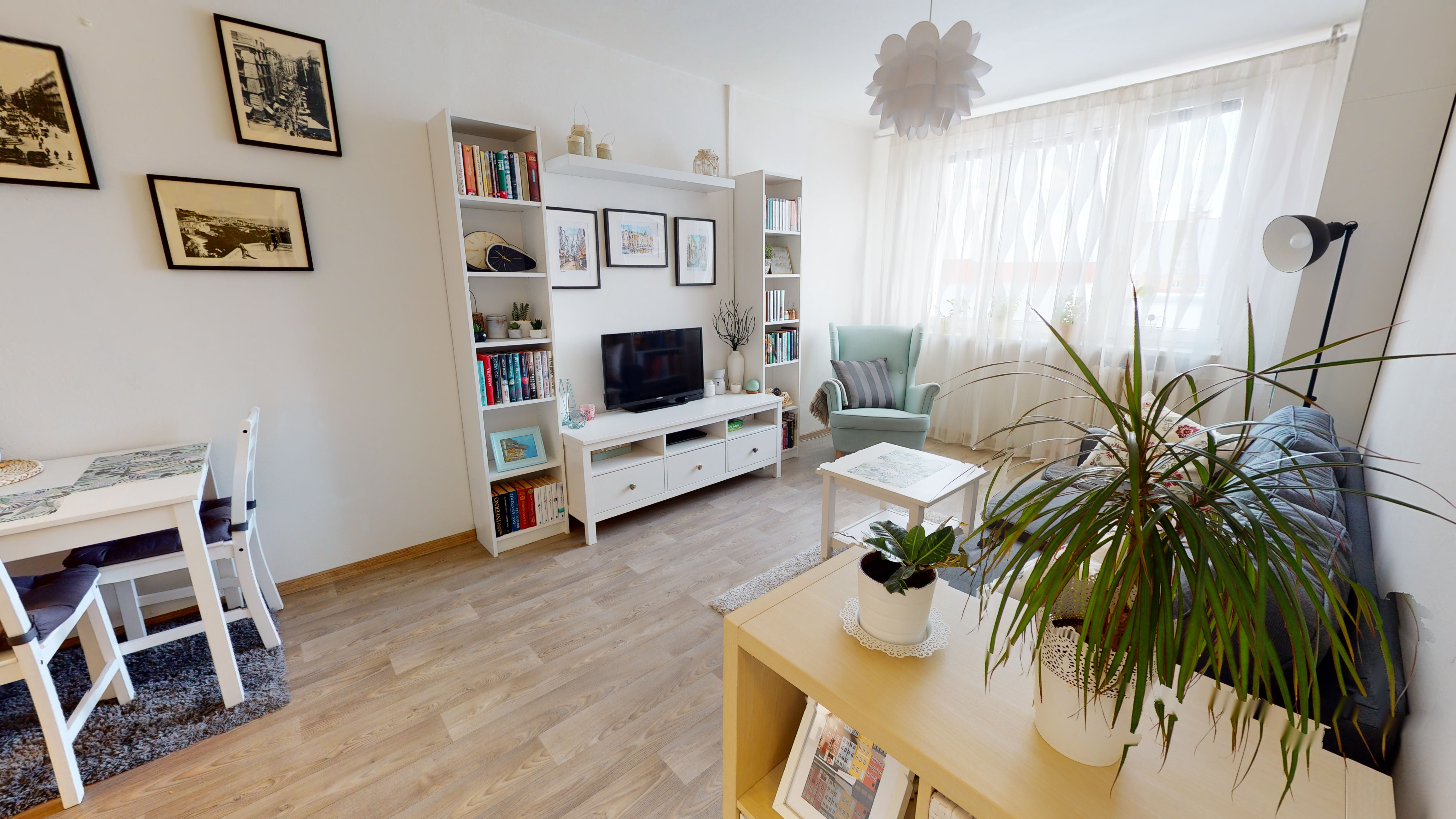 Bytová jednotka má toto dispoziční členění: vstupní chodba, samostatné WC, koupelna (umyvadlo, vana), ložnice a obývací pokoj s kuchyňským koutem (kuchyňská linka, elektrický sporák se sklokeramickou varnou deskou a troubou, digestoř). K bytu náleží sklepní kóje o výměře 2,9 m² a možnost využívání společné kolárny a kočárkárny. V roce 2018 proběhla rekonstrukce, díky které má byt zděné jádro, modernizovanou koupelnu a nové samostatné WC. Vyměněna byla i podlahová krytina a proběhla instalace nových plastových oken. Vše je tedy připraveno k okamžitému užívání.