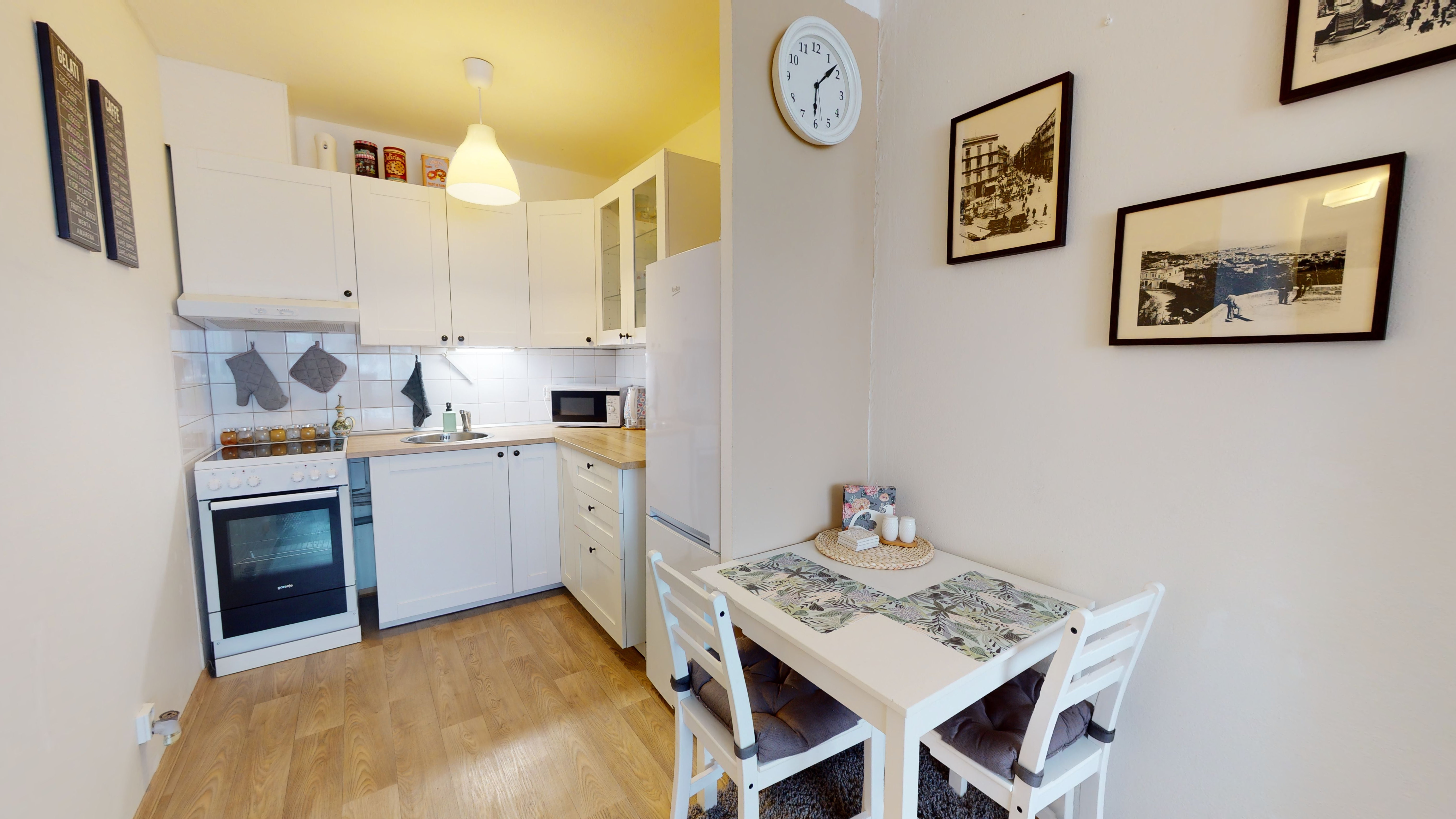 Byt je situován v klidné lokalitě poblíž lesoparku Velký háj, avšak velkou výhodou je výborná dostupnost do Prahy – centrum se nachází přibližně 25 minut cesty autem. Město Odolena Voda nabízí veškerou občanskou vybavenost. V blízkosti se nachází mateřská i základní škola, zdravotní středisko, lékárna i obchody. Autobusová zastávka je vzdálena pouhých 235 m, přímý spoj na stanici metra Kobylisy trvá přibližně 20 minut.